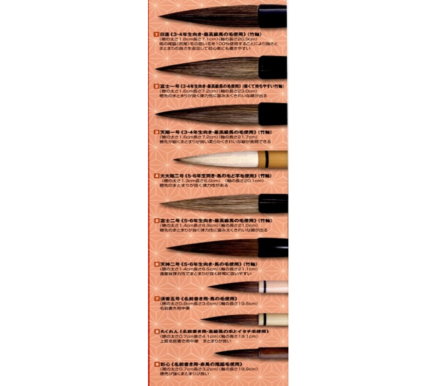 馬の尾脇(尻尾)けの固い毛を100%使用することによりまとまりの良さ を追求して初心者にも書きやすい